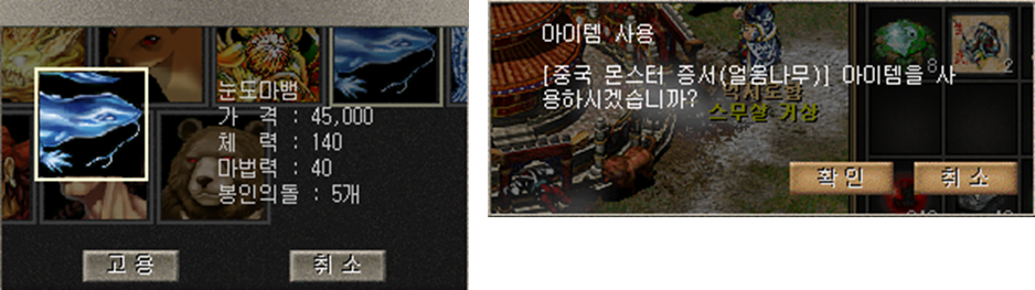(※ 파란색 글자는 몬스터 증서로 구매할 수 있다)